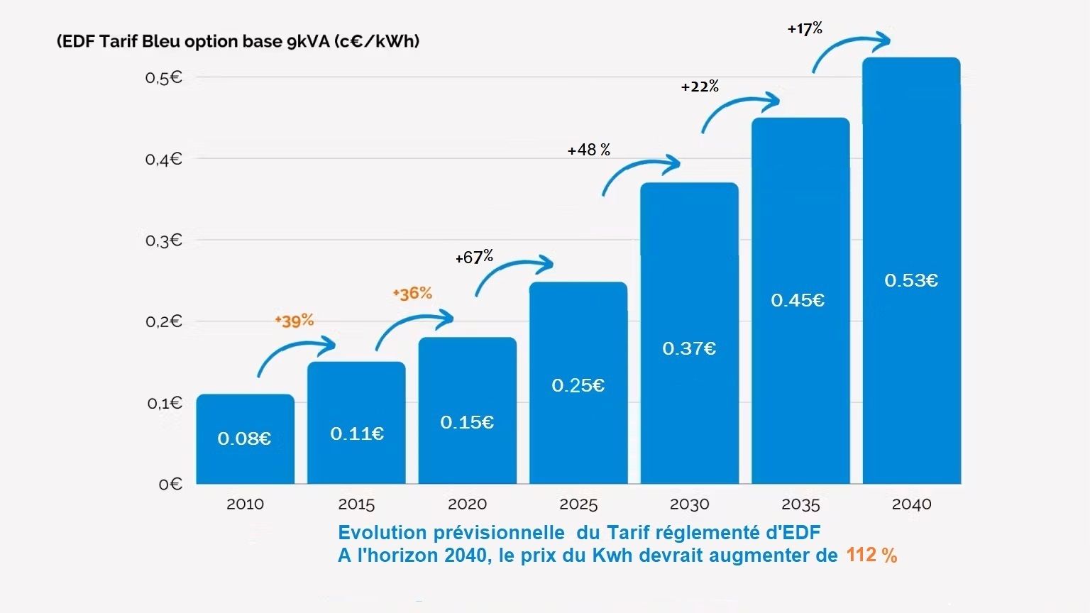 Plus le prix de Kwh augmente, plus vous faite des économies et plus vite vous récupérez le coût de votre installation !