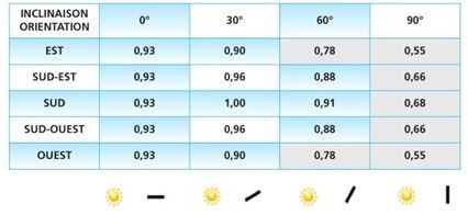 En France , la meilleure orientation possible est plein sud , l’inclinaison optimale est de 35° pour avoir la meilleure production annuelle . Dès que l’on s’écarte de ces standards, les performances chutent de manière sensible.